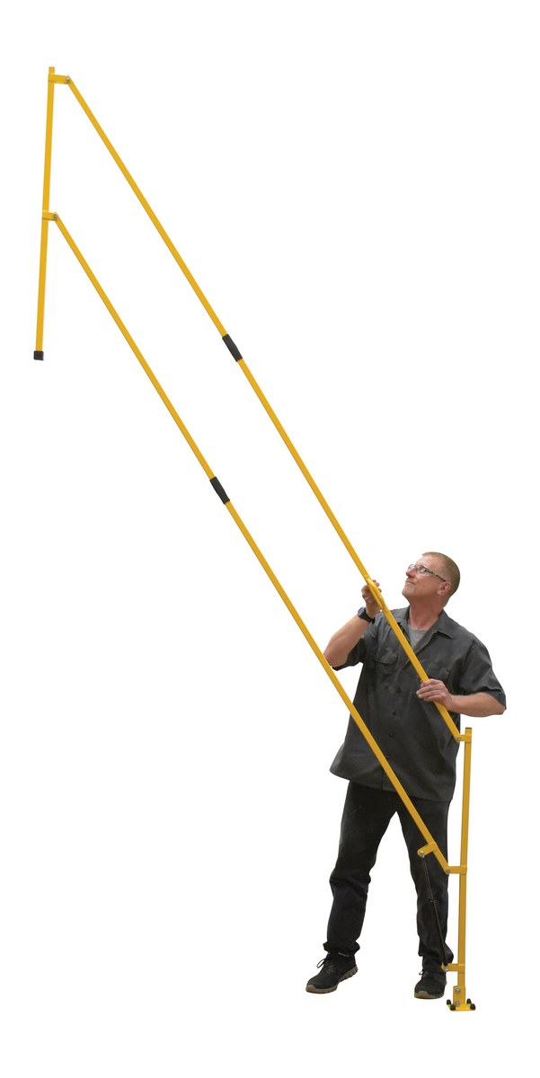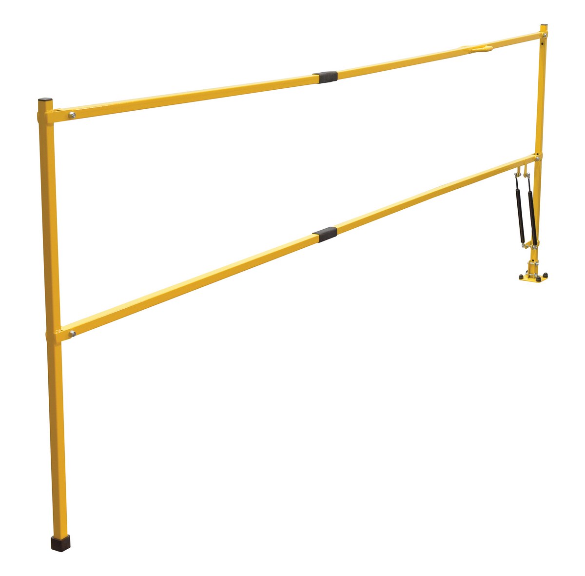 The Safety Lift Gate can be lifted out of the way with a single finger. Simply lift and the self folding action folds the gate in a vertical position. With the gas strut cylinder, the gate can be lifted with the slightest of effort. The Lift Gate is manufactured of steel tubing with a yellow baked-in powder-coat finish for added toughness. The unique design can be either wall or floor mounted. The Lift Gate is fantastic for mounting on loading dock doors to help reduce the possibility of people falling.