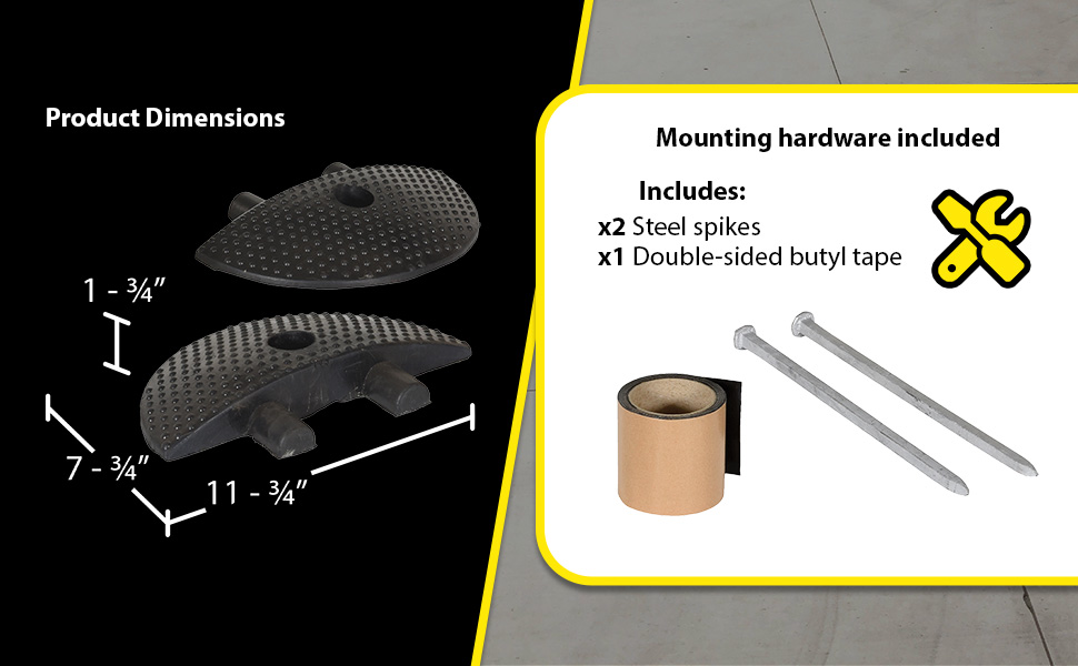 The speed bump end caps are designed to secure the ends of speed bumps. With a heavy duty molded rubber construction, caps are durable and long lasting. Installation hardware is included. End caps are sold as a pair.