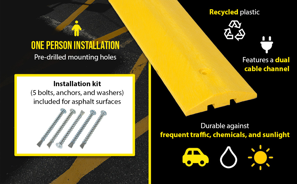 | Plastic Heavy Duty Speed Bump Asphalt Hardware 72 In. x 12 In. x 2-1/4 In. Yellow | Compression Strength Per Square Inch (lb.): 3200 Number of Mounting Holes: 4 | 43 |