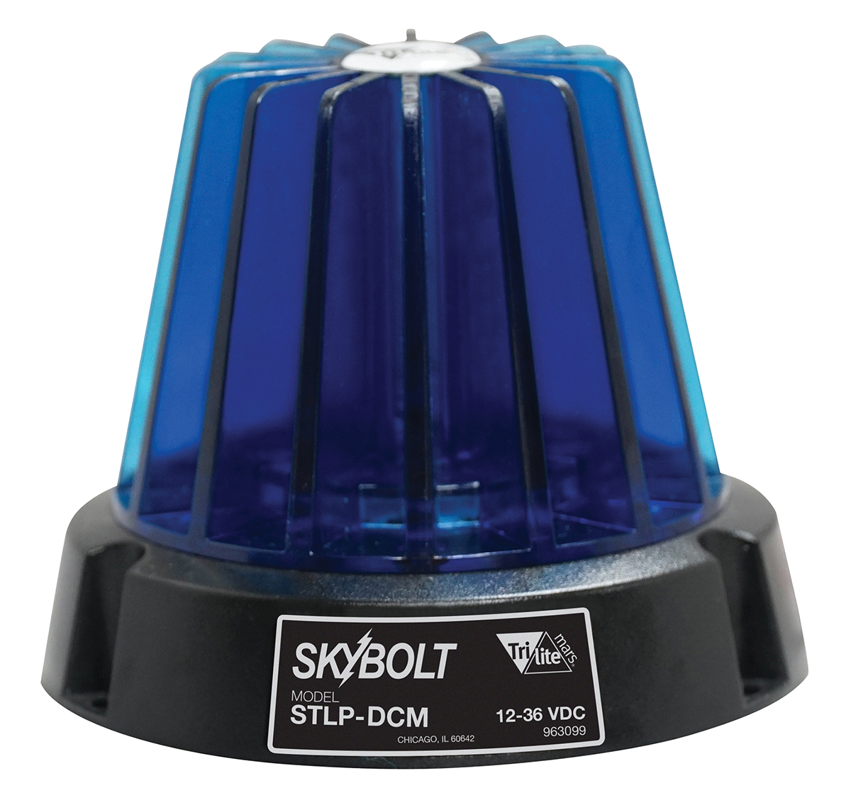 The Fork Truck LED DC Strobe Beacon is driven by a powerful LUXEON LED, high intensity "pops" of light are seen through the finned lens of this unique beacon. A patented "light pipe" design ensures that light travels easily from an internal LED through the translucent outer fins, catching the eye of pedestrians, motorists, or shop personnel. Made from rugged polycarbonate, it's virtually indestructible! It is watertight and will operate in all types of weather. Ideal uses include warning signaling for safety and utility vehicles, lift trucks, elevated work platforms, and heavy equipment. Choice of clear or colored lenses to indicate warning for a variety of 12-36VDC signaling applications. Available in permanent or magnetic mounts. Dome colors available: Amber, Blue, Clear, Green, or Red.