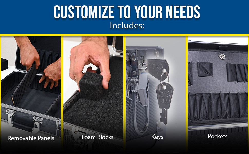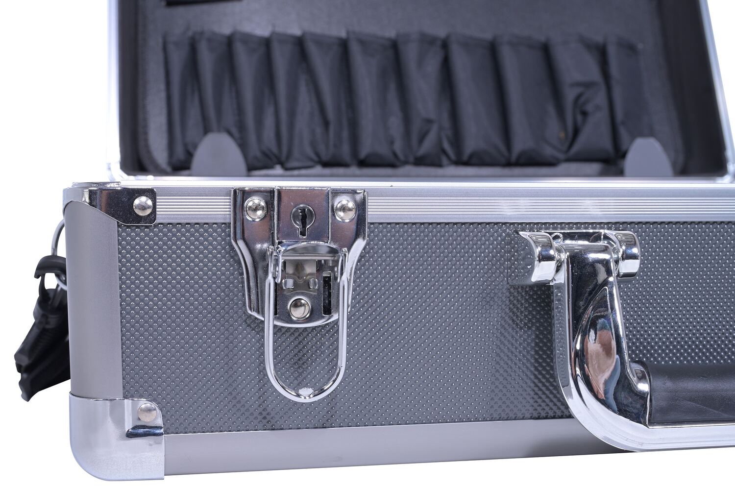 An Aluminum Carrying Case is a great way to store and transfer tools. The aluminum construction is hardy and can withstand the harsh elements of daily use, keeping items safe. With a compact design, the unit is perfect for on the go or left in a stationary place. Sleek smooth finish promotes simple handling.