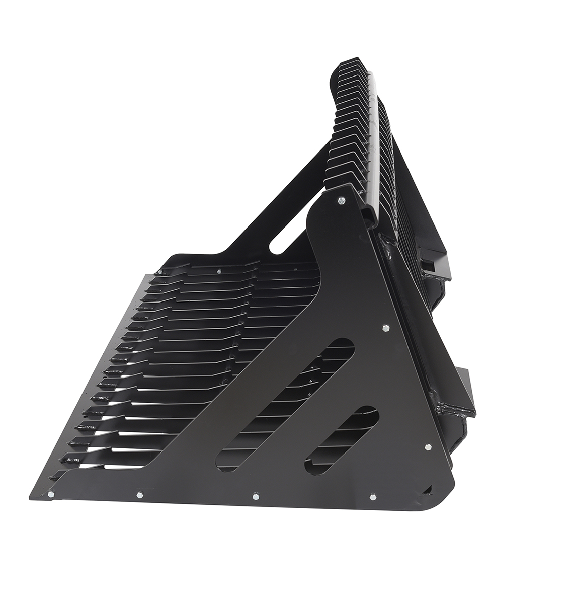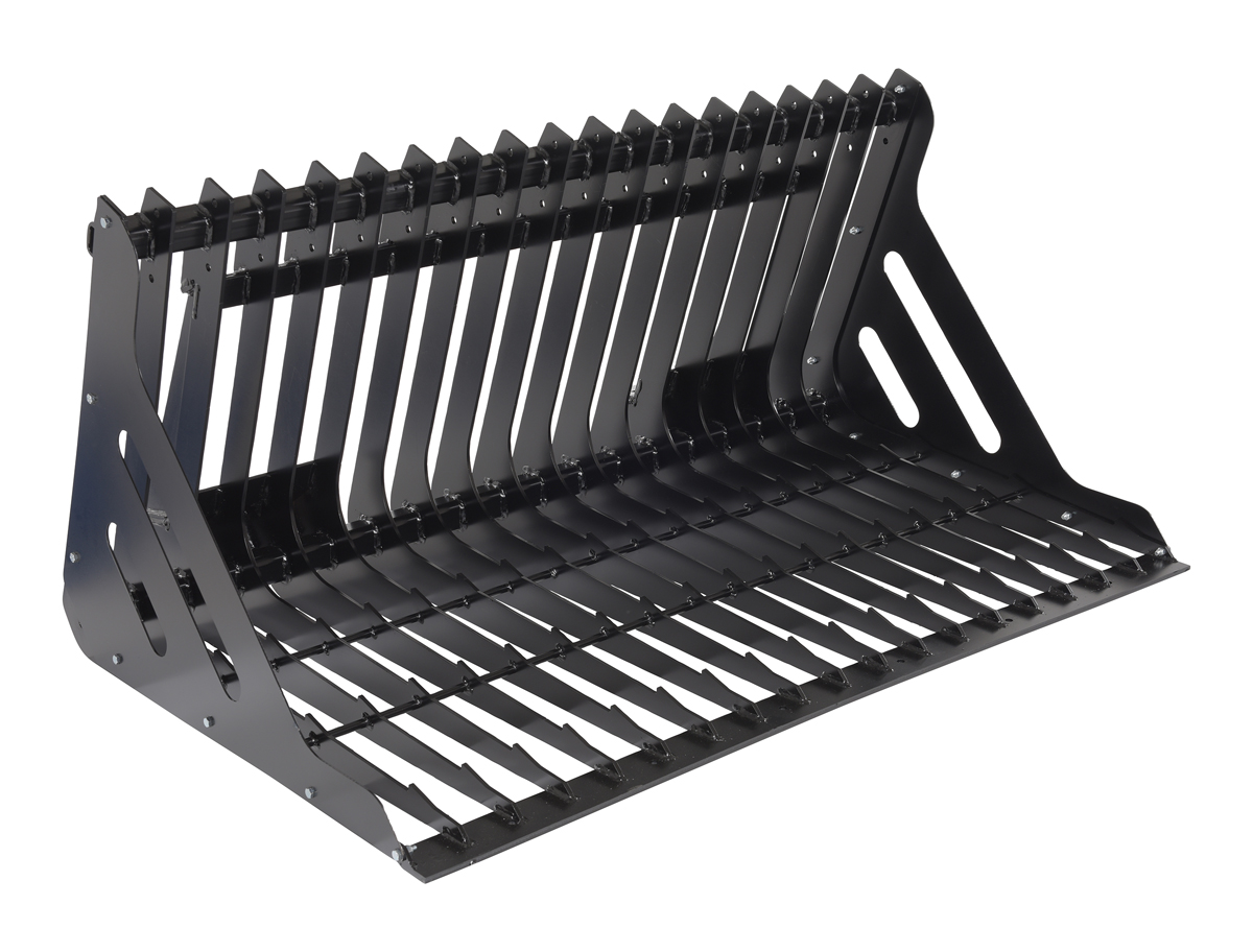 A skid steer rock grater bucket works wonders in the landscaping and construction industries. With a low profile design, along with an immense structural volume, it makes loading and unloading heavy rocks as easy as ever. With a simple attachment, connecting to an existing skid steer is as quick as can be. Once in place, the bar style bottom platform is ready to transport heavy loads and minimize manual labor.