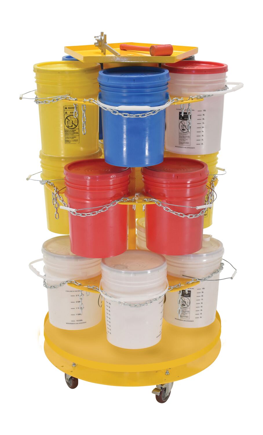 PAIL-T3-CAR-15 PAIL-T3-CAR-15Steel 5 Gallon Pail Carousel Rack, 15 Pails 350 lbs. Capacity Per Shelf YellowCapacity Per Shelf (lbs.): 350 lbs.