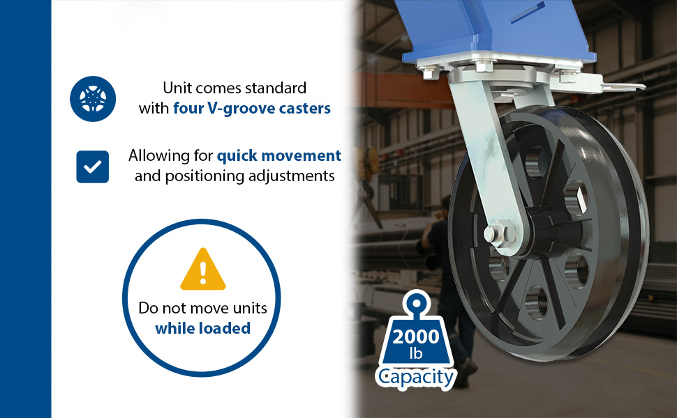 | Steel Knock-Down Adjustable Height Gantry Crane with V-Groove Cast Iron Casters 15 Ft. Wide x 10 Ft. Max Usable Height 2,000 Lb. Capacity Blue | Uniform Capacity (lb.): 2,000 Adjustable Clearance Range (in.): 78 to 120 | 678 |