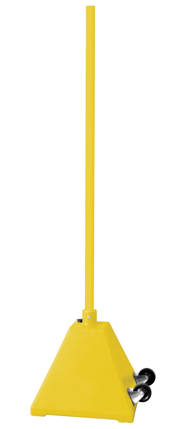 PYSB-W-Y PYSB-W-YLow Density Polyethylene Plastic Pyramid Sign Base with Steel Pole and Wheels 22 In. x 22 In. x 98 In. YellowMaximum Fill Weight (lb.): 100