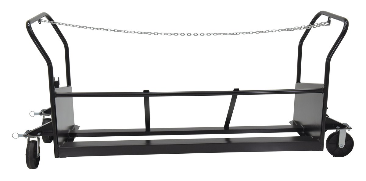 No more lugging heavy trash cans around instead transport them with a Trash Can Cart. Transport up to three trash cans at a time. Each unit is secured in place with a heavy duty chain and chain retainer. The push handle is located at an optimum ergonomic height of 40-11/16". Tow bar on one end for towing with a golf cart or similar service vehicle and a pitch hitch on the other end to attach multiple units together for towing. Rolls smoothly on four 8" x 2 (2) rigid, (2) swivel 4 position locking casters. Trash Cans sold separately, see here.