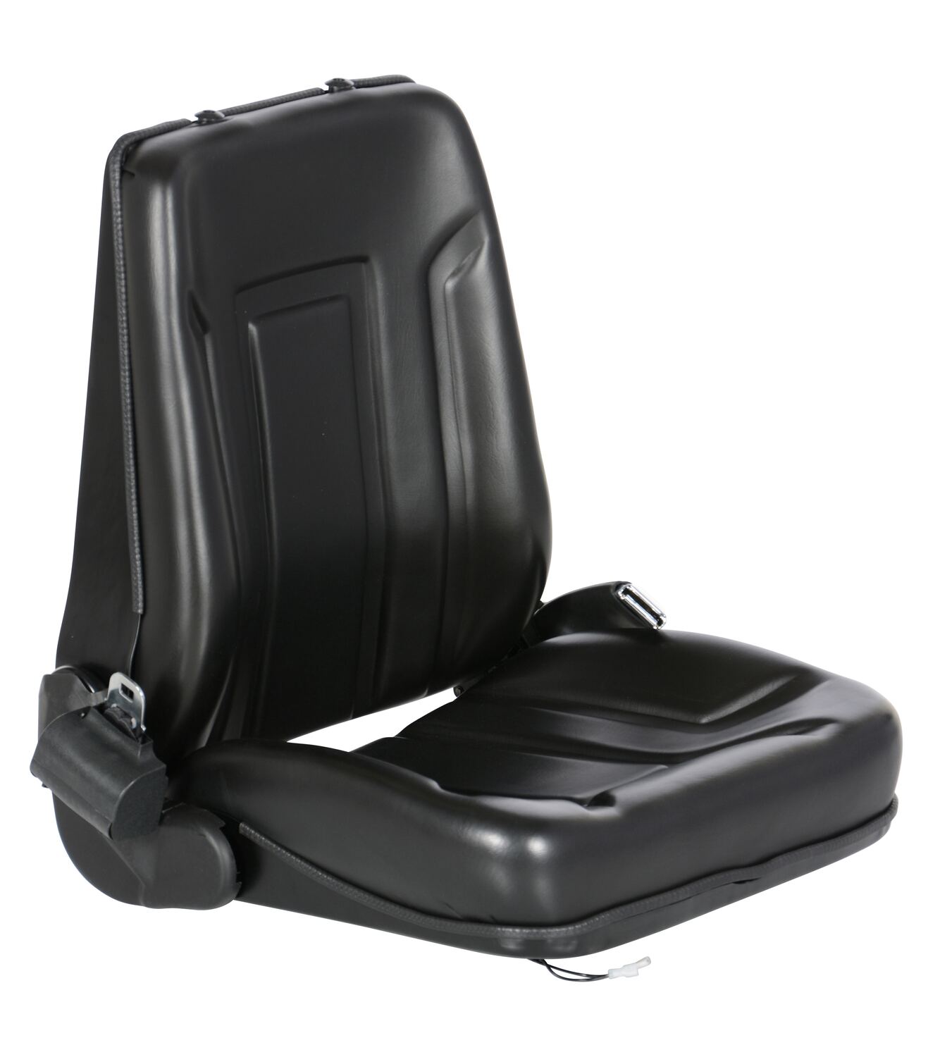 Ergonomic and comfortable seat design helps provide optimum body support for individual operators. Replace worn or broken fork truck seats with our easy to install universal mounting design. Standard features include: ergonomic seat design, vinyl or cloth material, low profile design, safety seat switch, storage pockets, seat back angle adjustment 8 degrees, and retractable safety belt.