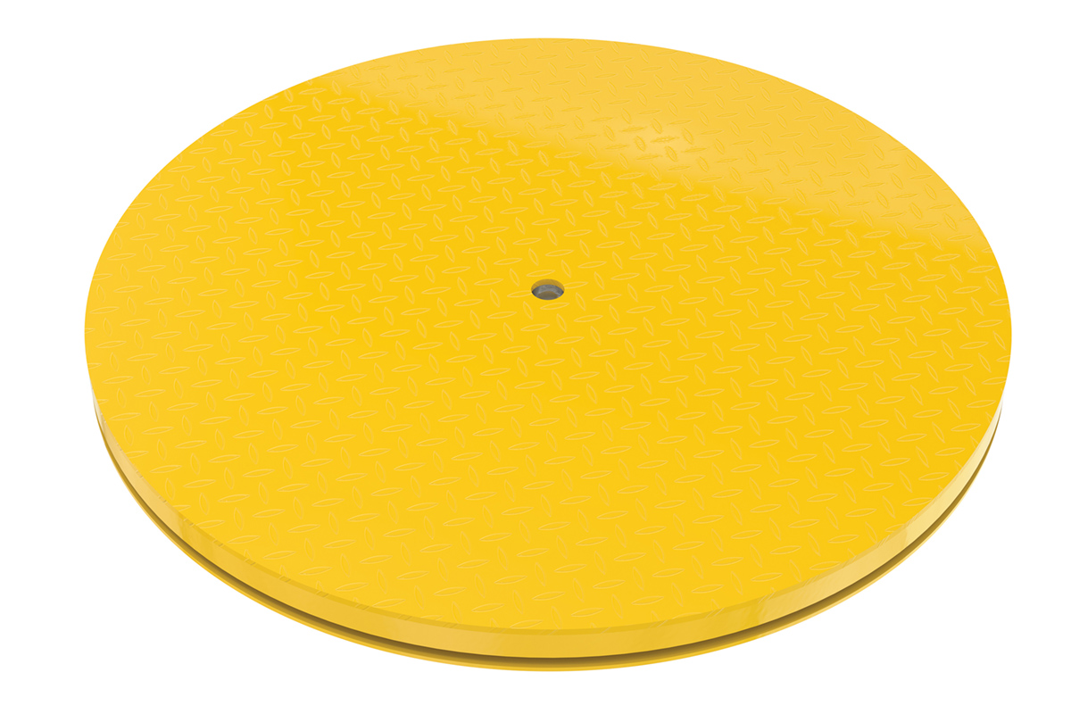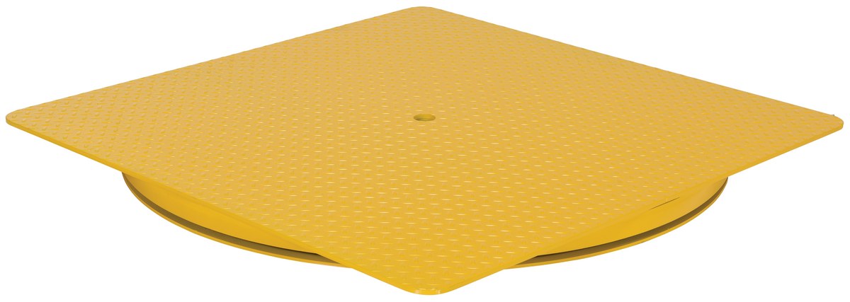 The Heavy Duty King Pin Carousel has all the ergonomic benefits of the standard carousel with a top plate and stabilizing center pin. Unit will handle a wider variety of loads. Features include 1/4" tread plate top on 4,000 lbs. and 3/8" tread plate top on 6,000 lbs. models. Also includes a heavy-duty maintenance free bearing. The king pin design allows off set loading up to 50% of the capacity on at least 50% of the deck.