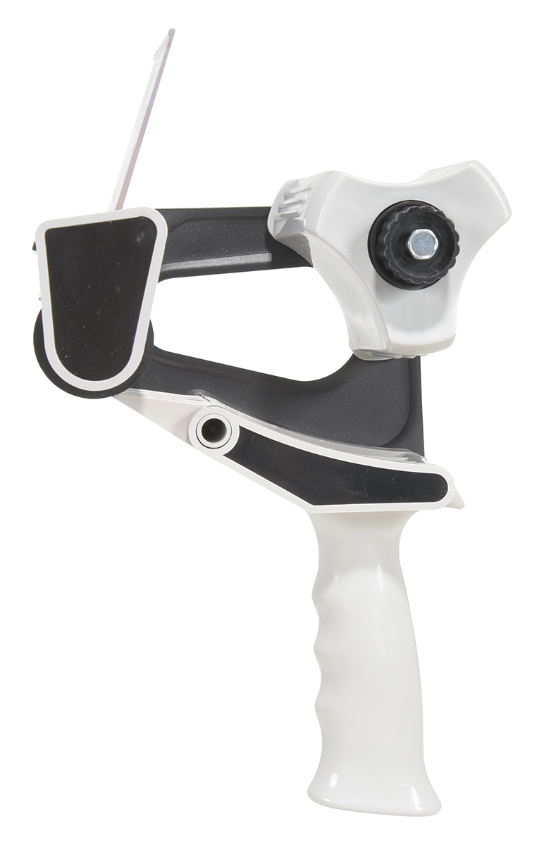 The hand held Tape Dispenser is great for the distribution and packaging facilities. The plastic construction is designed for comfortable lightweight use during long periods of constant use. Simply fit tape unit into dispenser and pull over the roller opening. Once onto the roller, the user can dispense the tape smoothly to the required length. Fits 3" wide tape rolls.