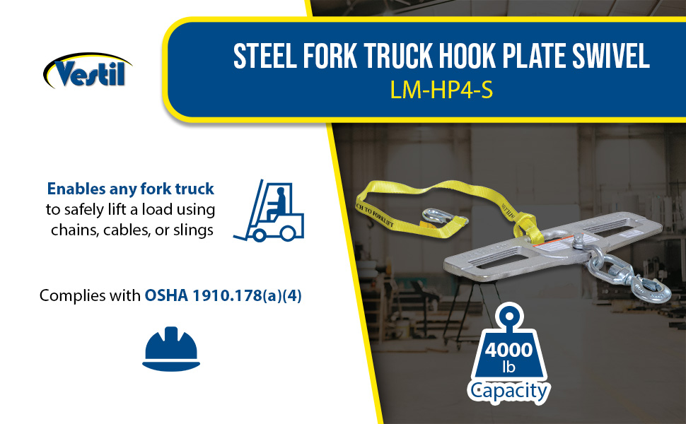 LM-HP4-S LM-HP4-SSteel Fork Truck Hook Plate Swivel 4,000 Lb. Capacity SilverUniform Capacity (lb.): 4,000