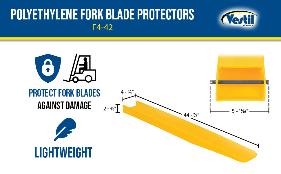 F4-42 F4-42Polyethylene Fork Blade Protectors 4 In. x 42 In. YellowUse with Fork Blades Width/Length/Height (in.): 4 x 42 x 2