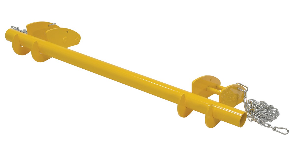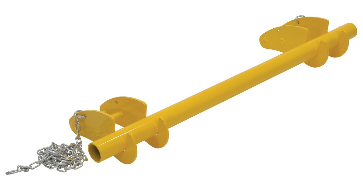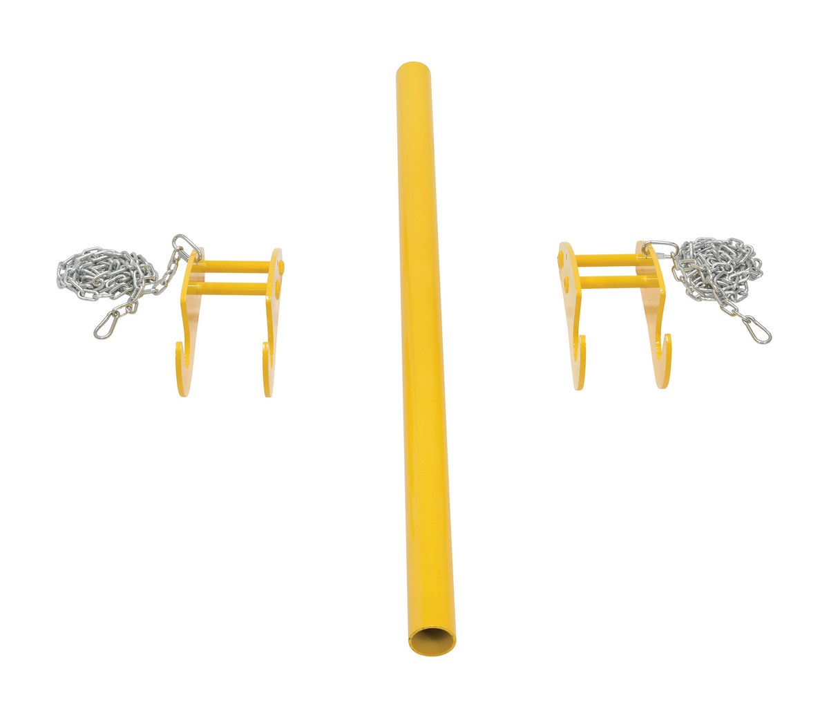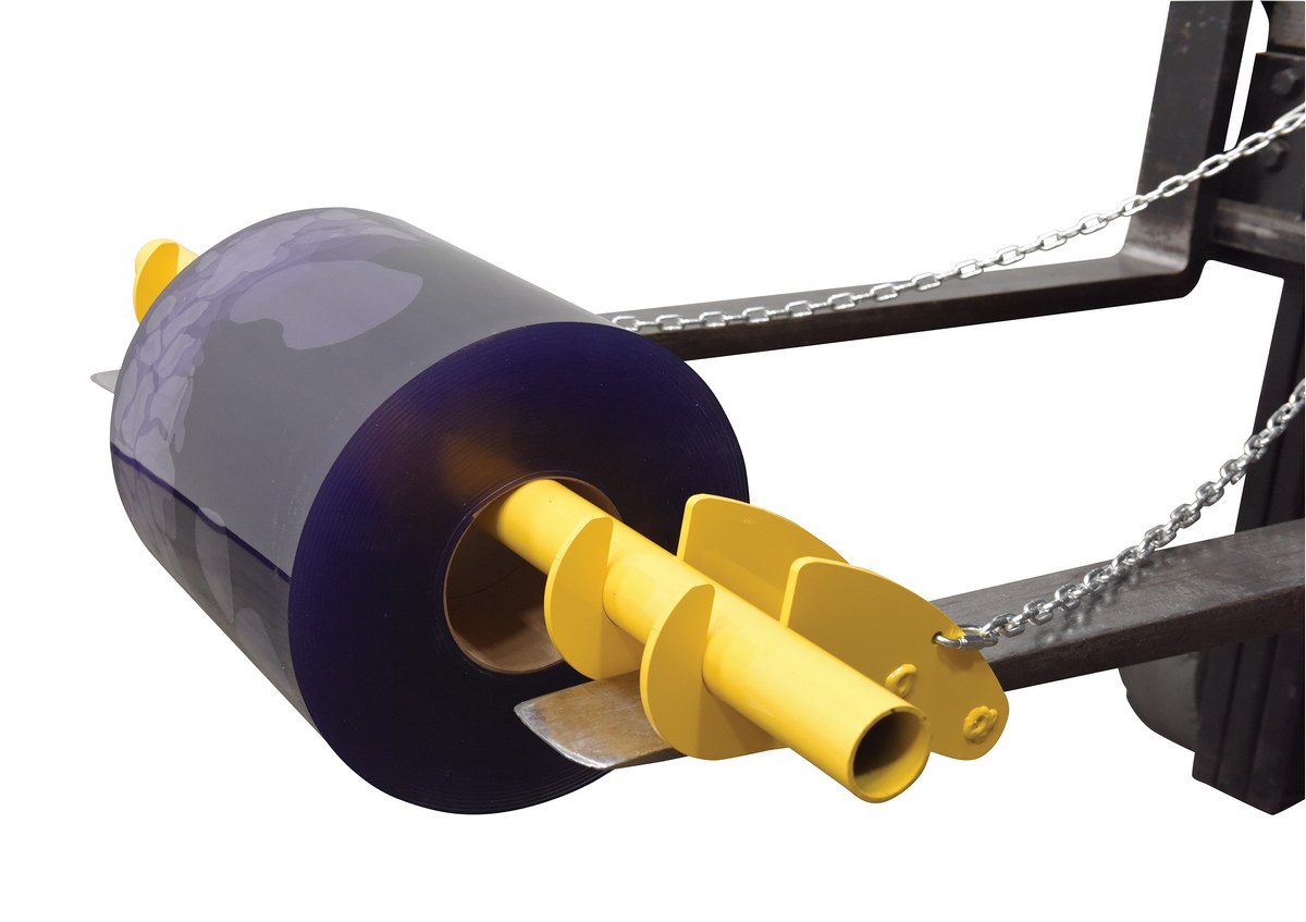 For use with 4" wide forks. Includes two 72" long safety chains with quick clasp and a 2-3/8" diameter reel support bar (48" long). Distance between forks not to exceed length of support bar.