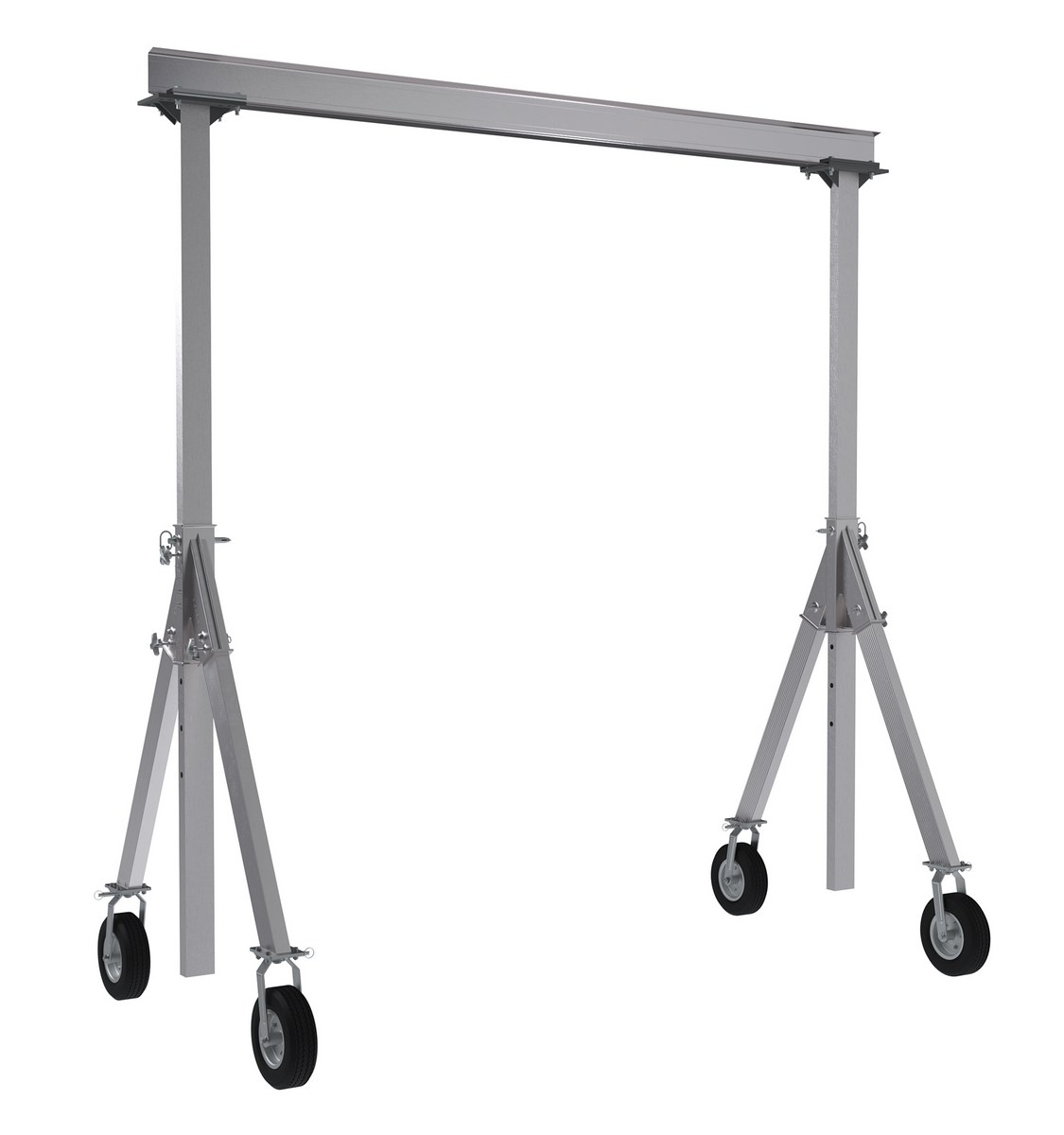 | Aluminum Adjustable Height Gantry Crane with Pneumatic Rubber Casters 8 Ft. Wide x 10 Ft. Max Usable Height 4,000 Lb. Capacity Silver | Uniform Capacity (lbs): 4000 Overall I-Beam Length (ft.): 8 | 301 |
