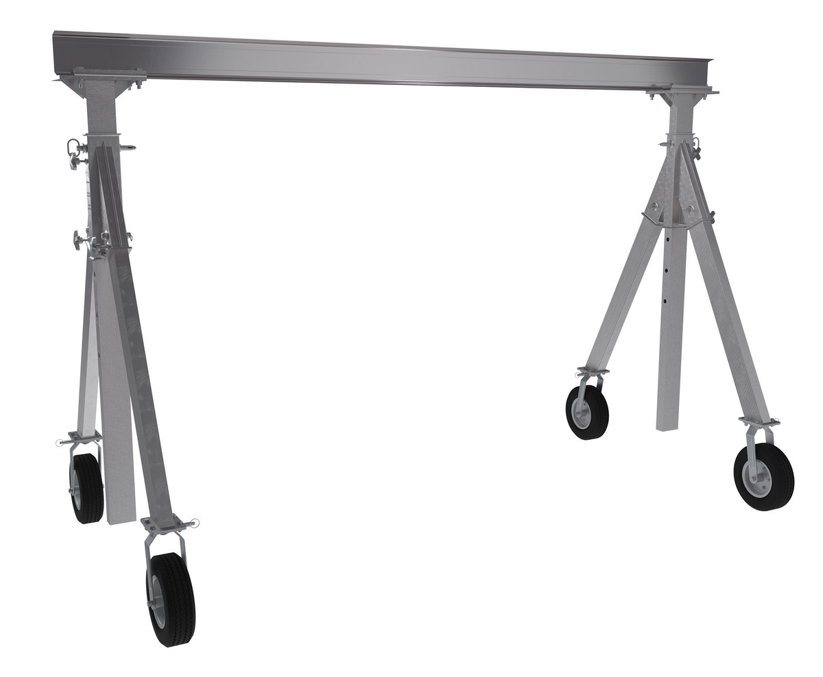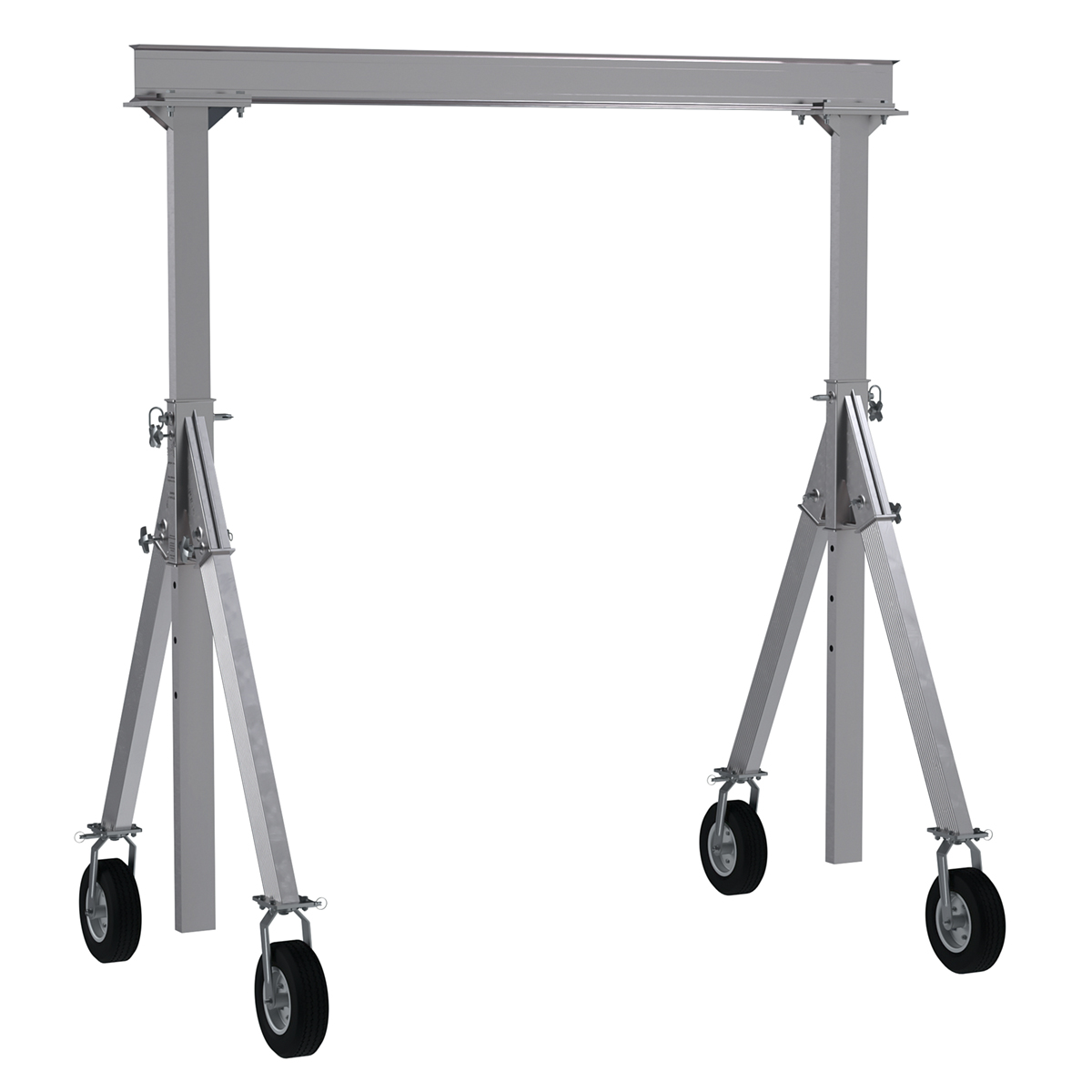 | Aluminum Adjustable Height Gantry Crane with Pneumatic Rubber Casters 8 Ft. Wide x 12 Ft. Max Usable Height 4,000 Lb. Capacity Silver | Uniform Capacity (lbs): 4000 Overall I-Beam Length (ft.): 8 | 301 |