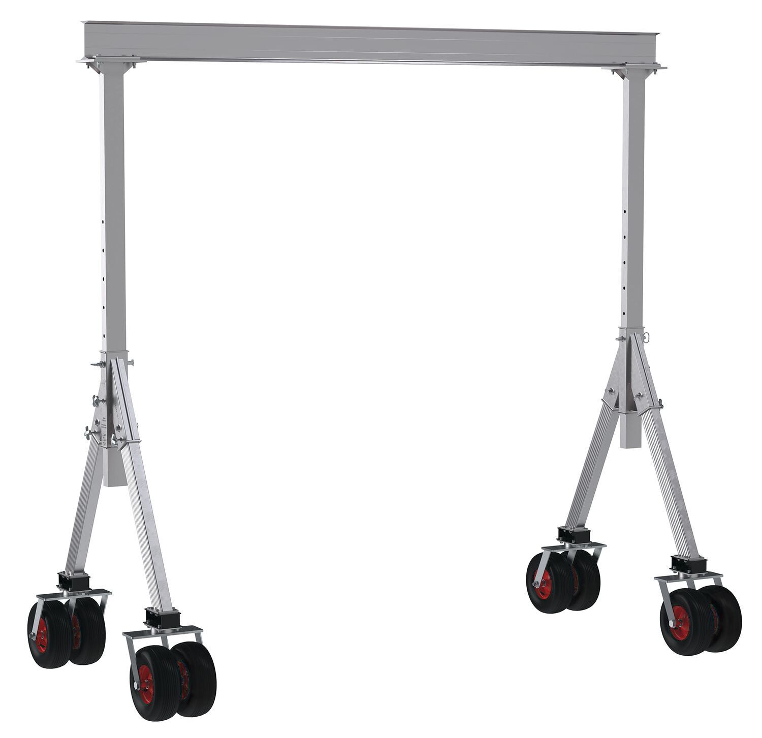 | Aluminum Adjustable Height Gantry Crane with Pneumatic Casters 8 Ft. Wide x 10 Ft. Max Usable Height 1,500 Lb. Capacity Silver | Uniform Capacity (lb.): 1500 Overall I-Beam Length (ft.): 8 | 297 |