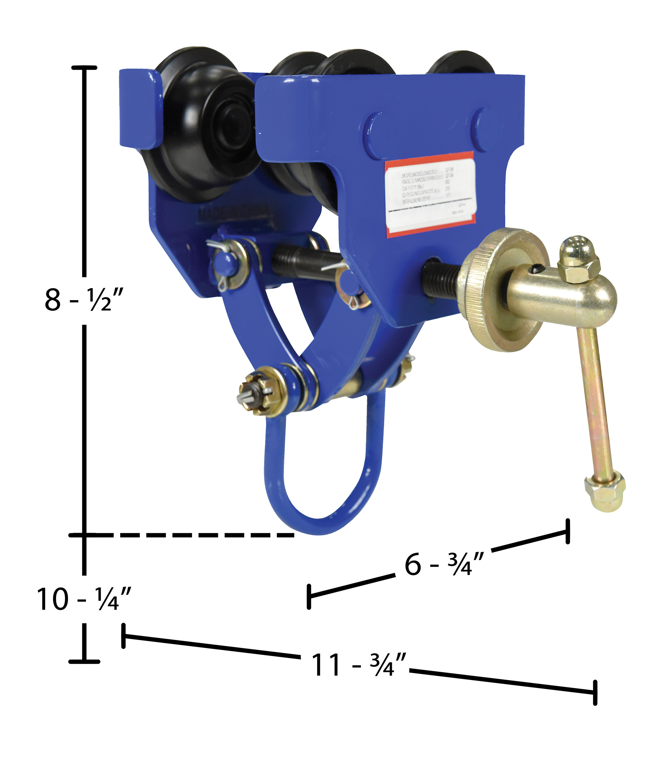 QIT-10 QIT-10Steel Quick Install Manual Trolley 13-5/8 In. x 20-3/16 In. x 20-3/8 In. 10000 Lb. Capacity BlueUniform Capacity (lb.): 10,000