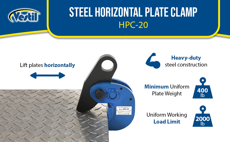 HPC-20 HPC-20Steel Horizontal Plate Clamp 2,000 Lb. Capacity BlueUniform Working Load Limit (lb.): 2,000