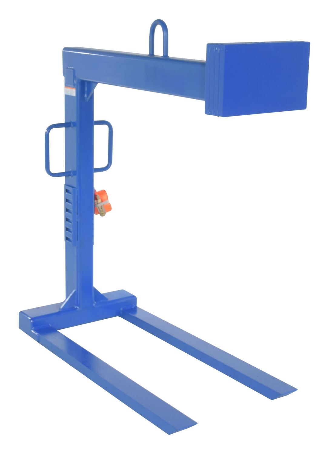 Give your products more security with the addition of the optional tie down track. The track is constructed of steel and includes six slots, allowing the user to position the (included) strap at varying heights. The design minimizes set up time, while increasing user safety. With the track welded to the vertical post of the pallet lifter, straps can then be quickly secured to the track and around many products.