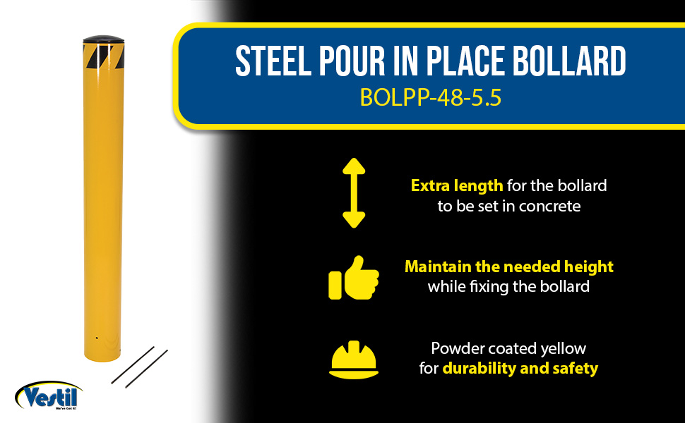 | Steel Pour In Place Bollard 48 In. x 4-1/2 In. Yellow | Usable Height (in.): 48-1/2 Outside Diameter (in.): 4-1/2 | 47 |