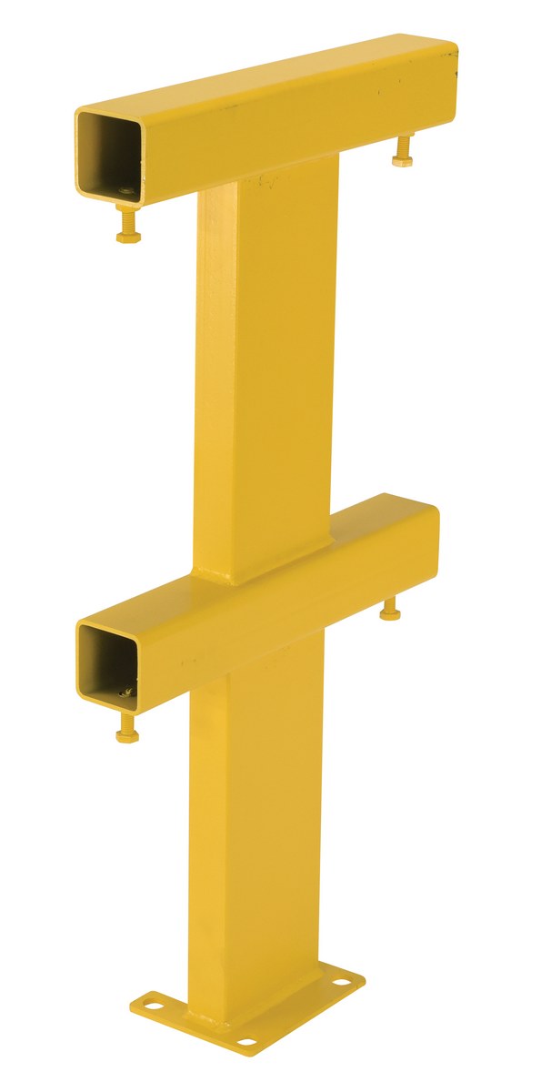 Modular Guard System can be ordered to fit almost any application. Designed for quick and easy assembly. Railing sections are installed and secured to each post with a single bolt. Select from different railing lengths to custom fit your application. Railing systems are made from heavy-duty 2-1/2" square steel tubing. Wall mounting posts may be used to secure guard assembly to a wall. Durable safety yellow powder coat finish. Steel construction. All components sold separately.