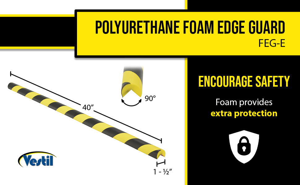 Versatile foam edge guards provided added protection when necessary. Each guard is manufactured from flexible foam that conforms to slightly irregular angles and surfaces Black and yellow alert striping. Sold in lengths of 40", easy to cut to custom lengths. Mounts with self-adhesive strips. Includes double sided tape for adhering.