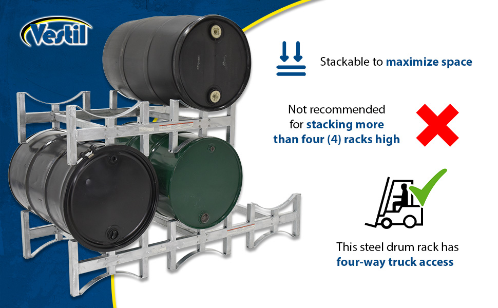 DRUM-RACK-3-G DRUM-RACK-3-GGalvanized Steel Stackable Drum Rack 3 Drum 55 Gallon 2400 Lb. Capacity GrayUniform Capacity (lb.): 2,400