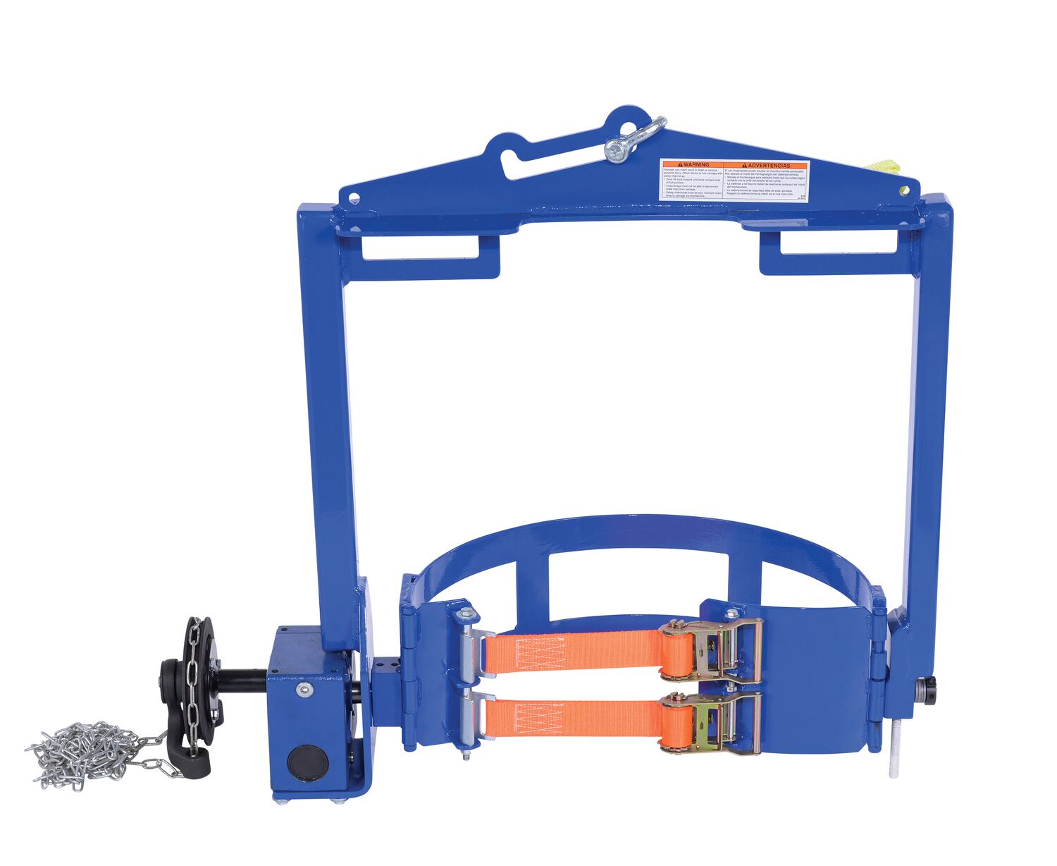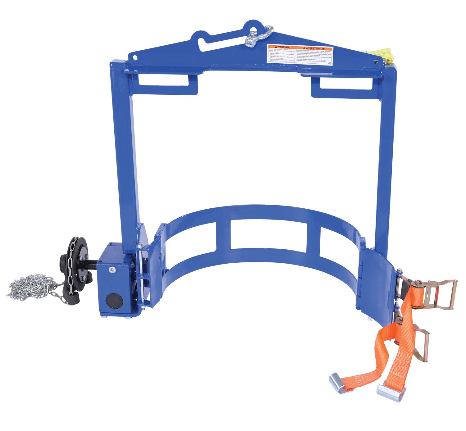 Rotate and position a fully loaded 55 gallon steel drum with ease. Use with an overhead hoist or a fork truck. Fork pockets measure 5-1/2"W x 1-15/16"H usable. Features a chain crank that allows the operator to rotate 360 degrees drums that are out of reach. Drums are held in place with a drum locking system. Meets OSHA 1910.179 requirements. Model DCT-2000 features gear box operation. Models ending with suffix "4WFP" have bolt on fork pockets for 4 way entry, usable 5"W x 1-9/16"H and 5-1/2"W x 1-15/16"H. |