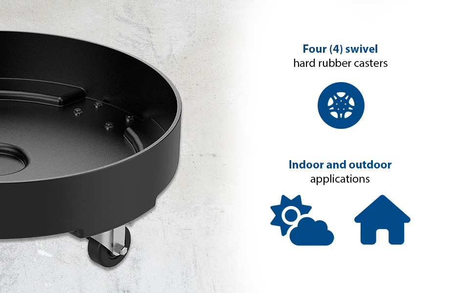 Manufactured from high impact strength polyethylene, these drum dollies are lightweight, yet strong. Dollies come standard with four (4) 3" swivel hard rubber casters and they are suited for both indoor and outdoor applications. The HD (Heavy Duty) 600 lb. capacity models have a steel support base.