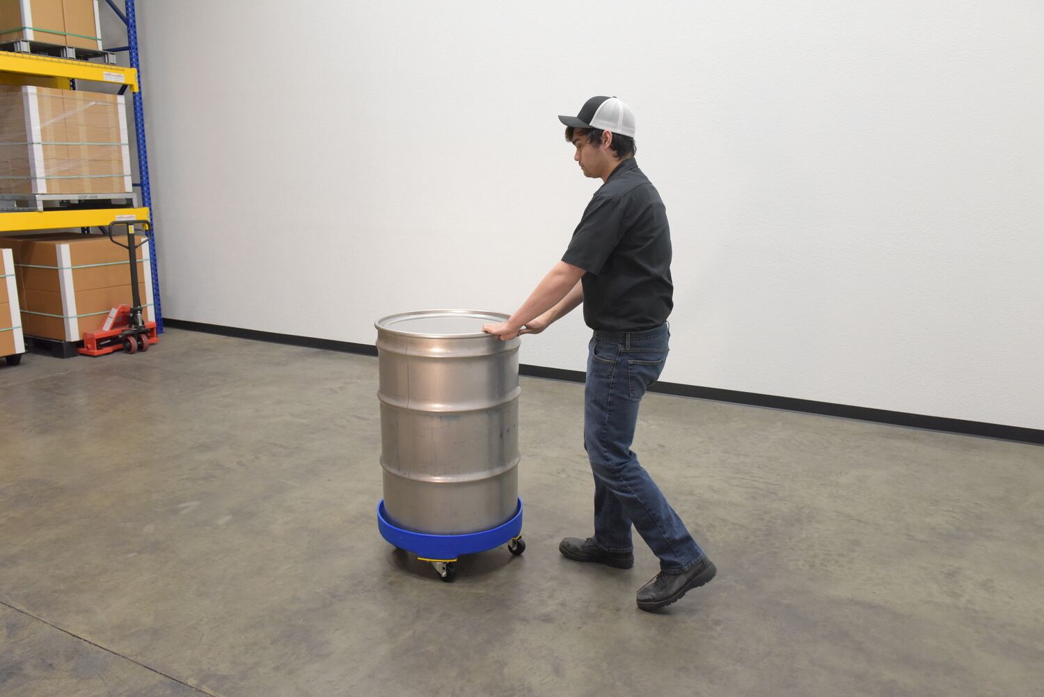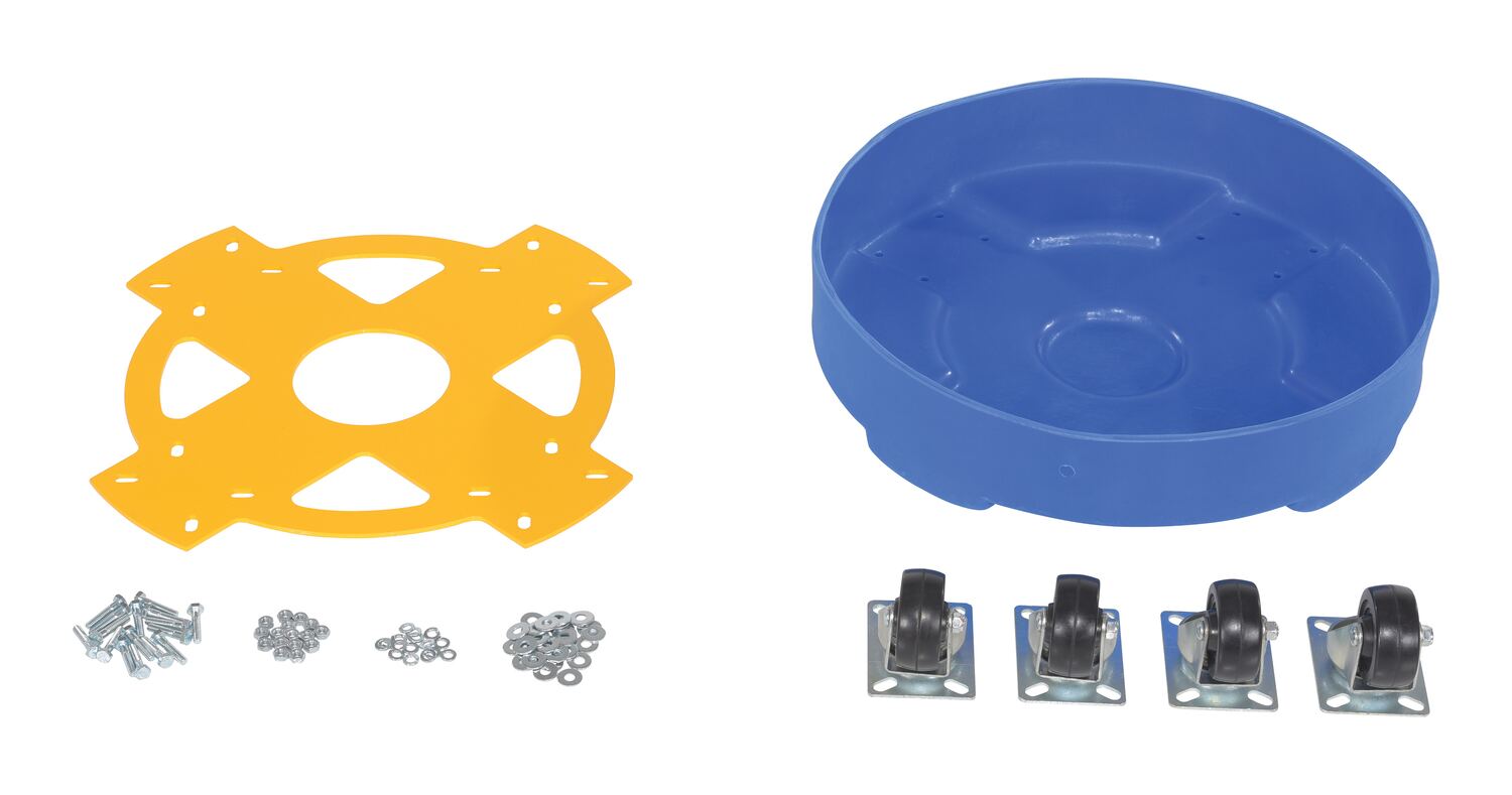 DRUM-DP-HD-55-BU DRUM-DP-HD-55-BUPolyethylene Heavy Duty Drum Dolly 55 Gallon 24-1/4 in. x 24-1/4 In. x 8-1/2 In. 600 Lb. Capacity Blue / YellowUniform Capacity (lb.): 600