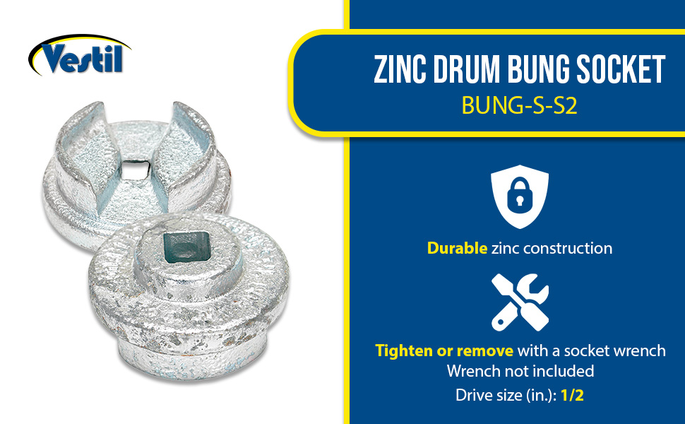 BUNG-S-S2 BUNG-S-S2Zinc Drum Bung Socket 1/2 In. Drive SizeFits Drum Plug (in.): 3/4 to 2