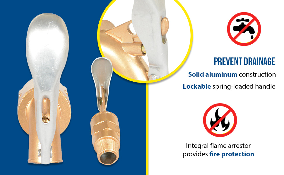 The Jumbo Drum Faucets, model JDFT, are ideal for dispensing viscous, non-corrosive flammables such as adhesives, paint, heavy oils, grease, and varnish. Padlock not included. Integral hook allows users to hang pail on faucet (51 pounds).