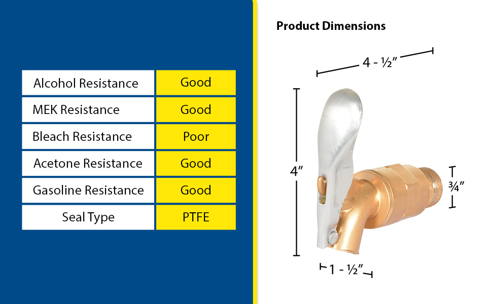 DFT-ADJ DFT-ADJBrass Manual Drum Faucet with Spring Loaded Handle 3/4 In. BungBung Size (in.): 3/4
