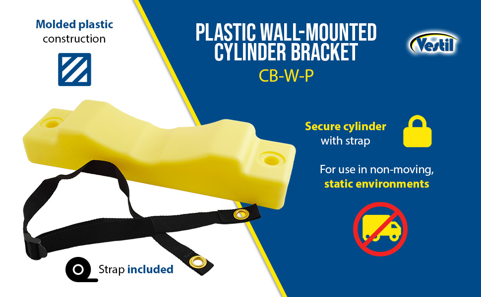 Simple design is easy to install. Simply bolt to wall and then secure cylinder with strap. Edges are protected with rubber guards on the steel units. Choose either steel or molded plastic construction. Maximum 12" cylinder diameter. For use in non-moving, static environments. Installation hardware is not included.