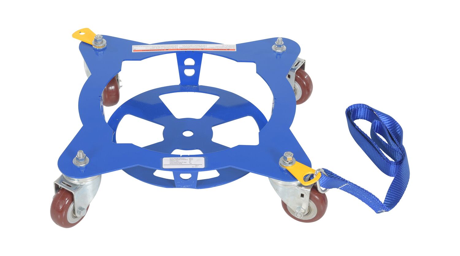 Move your 5 gallon containers with ease. Ideal for job sites, tile and grout work, janitorial and cleaning tasks and other industrial uses. Designed to work with round and square 5 gallon pails; plastic or steel. Rolls smoothly with all swivel 3" polyurethane casters. Ground clearance is 1-3/8". All steel construction with powder coat blue finish. Includes a 4 foot long pull strap.