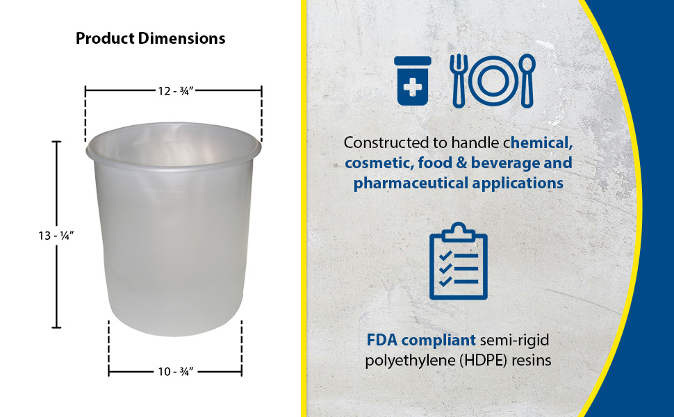 Pail Liners make disposing of materials easy, plus they help keep our environment cleaner by ensuring the maximum recovery of product. Liners also save you money by extending the lifetime of pails and reducing the cost to clean and recondition them. All rigid liners are manufactured using prime virgin FDA compliant polyethylene. Pails sold separately.