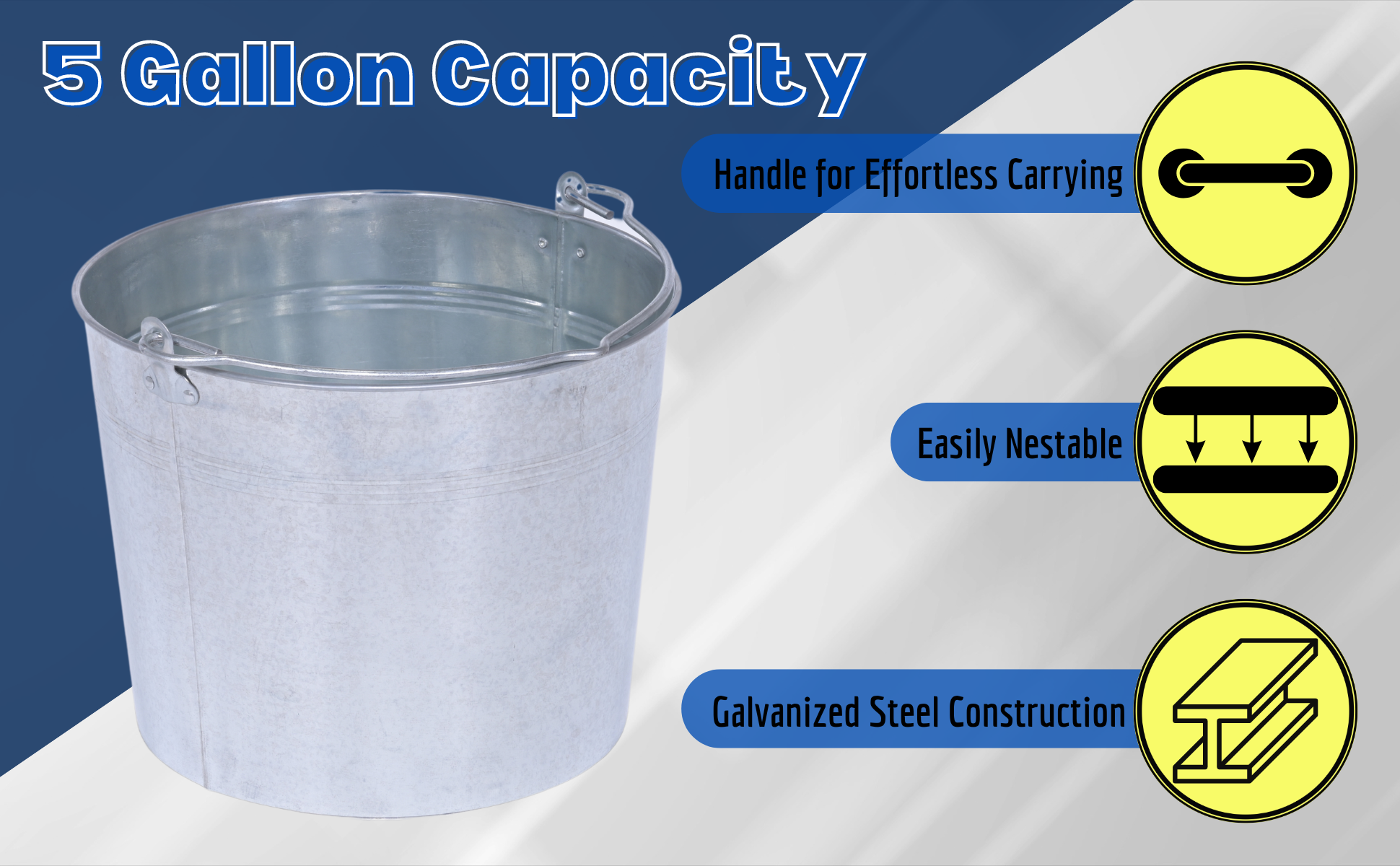 BKT-GAL-500 BKT-GAL-500Galvanized Steel Bucket 5 Gallon CapacityCapacity (gal.): 5