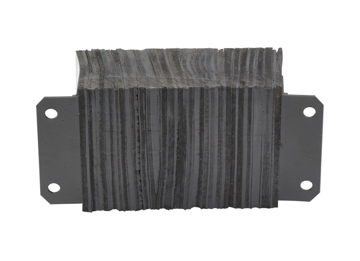 The laminated Dock Bumper provides durable, economical protection for loading docks and trailers. This unit is constructed of fabric reinforced rubber from recycled truck tires. The pads are laminated between painted structural angles and held together with steel tie rods. The width is bolt hole center to bolt hole center. Installation hardware sold separately.