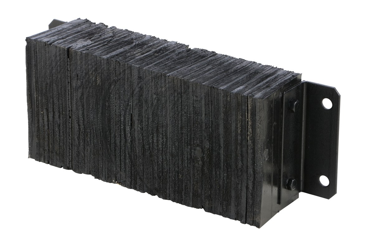 The laminated Dock Bumper provides durable, economical protection for loading docks and trailers. This unit is constructed of fabric reinforced rubber from recycled truck tires. The pads are laminated between painted structural angles and held together with steel tie rods. The width is bolt hole center to bolt hole center. Installation hardware sold separately.