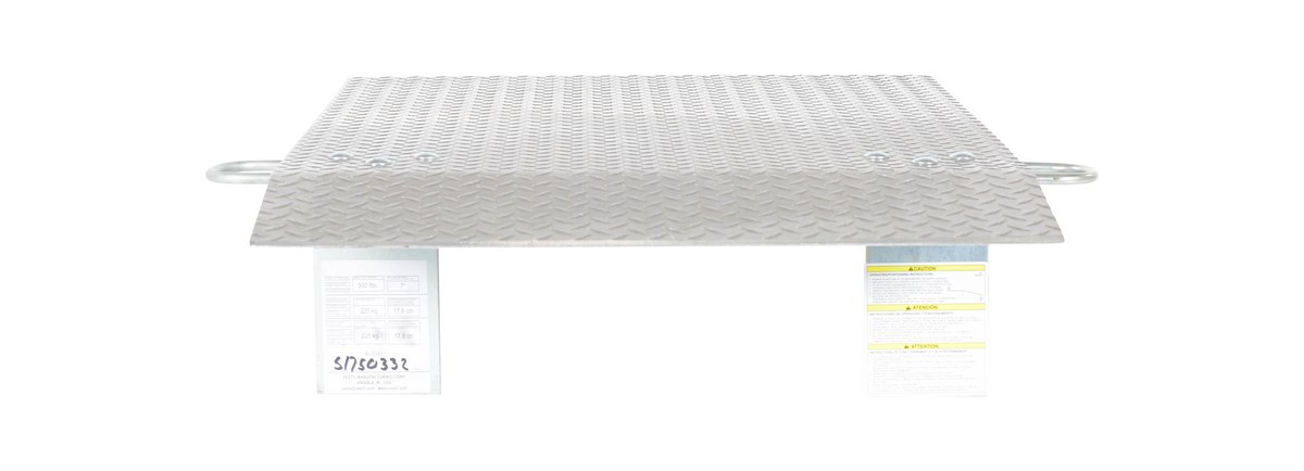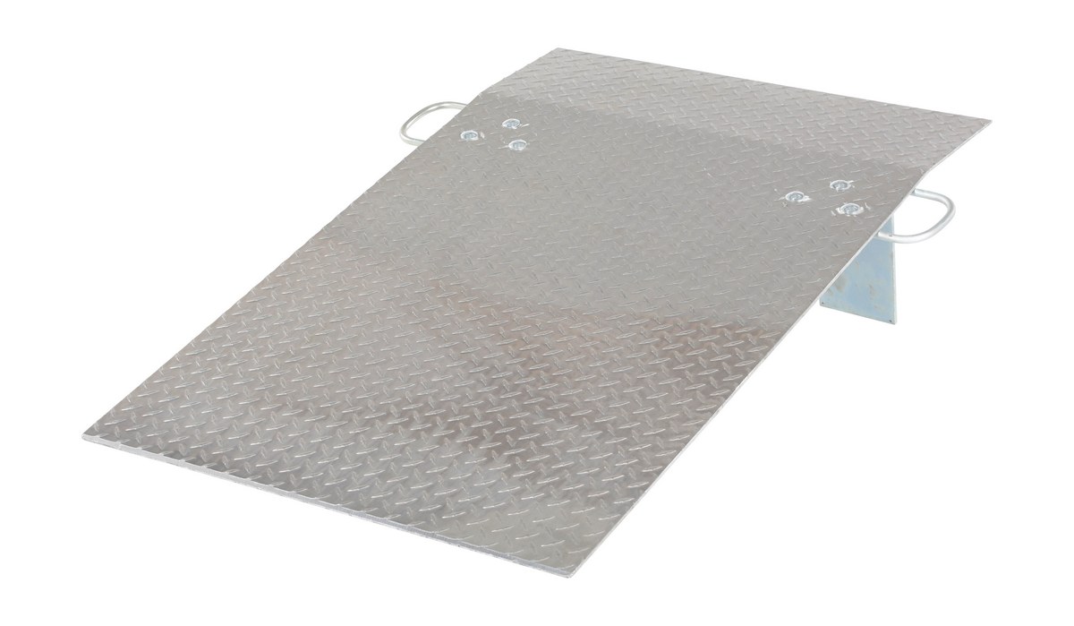 Aluminum Hand Truck Dock Plate 30 In. x 48 In. 500 Lb. Capacity SilverThis Aluminum Hand Truck dock plate is designed for use with two (2) wheel hand trucks. It is a convenient, safe, and easy way to access loading docks from trucks. This dock plate is lightweight and easily transported by just one person. The locking legs secure the plate for safe loading and unloading. Complete with bolt-on zinc plated carrying handles and locking legs.