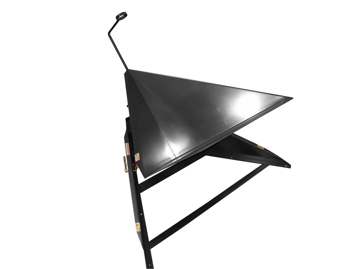 Steel Hand Lever Operated Air Corner Tilter 50-7/8 In. x 78-1/2 In. x 35-1/4 In. 1,500 Lb. Capacity GrayThe air corner tilter is a floor level multi-ply airbag powered tilter that provides ergonomic loading and unloading of bulk containers, gaylords, or crates. It is accessible by either pallet or fork truck and is activated by a hand operated control lever. The air bag inflates tilting and the material shifts to the corner of the container where it can be easily removed by manual or mechanical means. The regulator is factory preset to begin rotating the container when the weight reaches approximately 900 pounds. An included ratchet safety stop feature is a patented design, built to prevent the pivot bucket from dropping in the event of a pneumatic system failure. Includes adjustable vacuum pick-up wand holder (3-1/2" inside Diameter) and provides 12 of adjustment to accommodate various container heights.