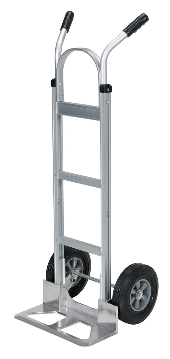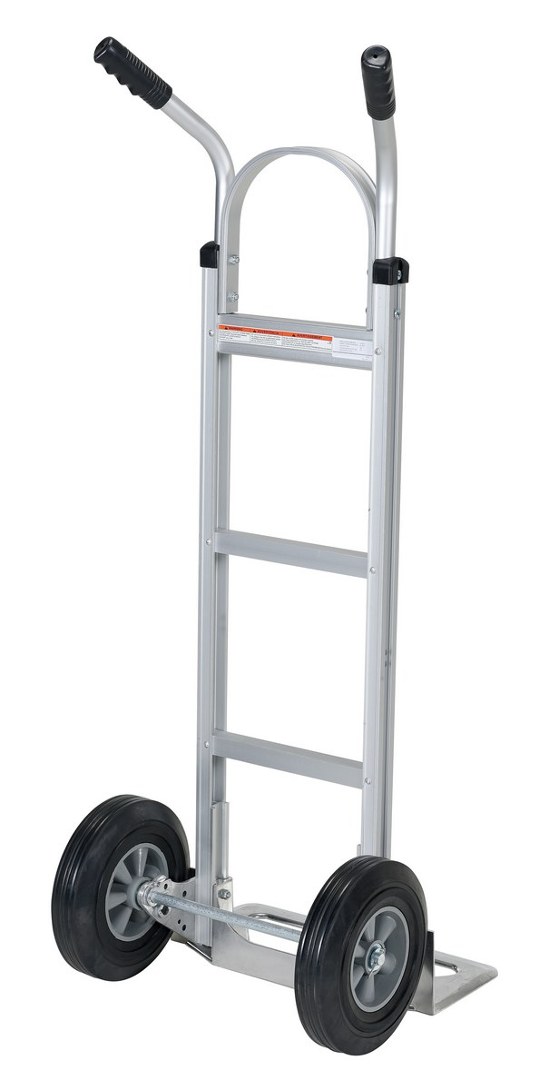 Aluminum Dual Handle Deluxe Hand Truck with Hard Rubber Wheels 19 In. x 19-1/2 In. x 51-1/4 In. 500 Lb. Capacity SilverThe deluxe Aluminum Hand Truck maximizes control for different types of loads. This hand truck can transport boxes wherever they are needed. Transport loads smoothly and evenly over rough or uneven floors.
