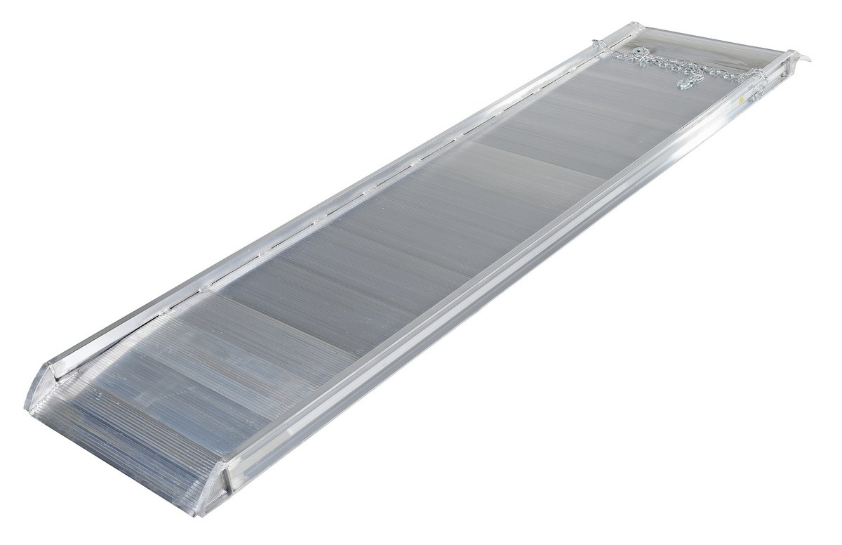 Aluminum Wheel Walk Ramp Overlapping Style 120 In. x 28 In. 2200 Lb. Capacity SilverThe Aluminum Walk Ramp enables delivery men/women, shippers, and receivers to load and unload trucks when docks are unavailable. Heavy-duty steel chains with steel grab hooks are attached to each side of ramp for safely securing ramp to truck. Constructed of strong aluminum alloy with non-skid tread surface. The ramp is lightweight and easy to handle. This overlapping style rests on the truck bed.