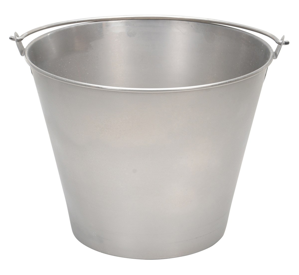 Stainless Steel Bucket 3-1/4 Gallon CapacityThe Stainless Steel bucket is for use in industrial and commercial applications where durability is required. Buckets are nestable and come standard with a carrying handle/bail for easy transport. Constructed of stainless steel.