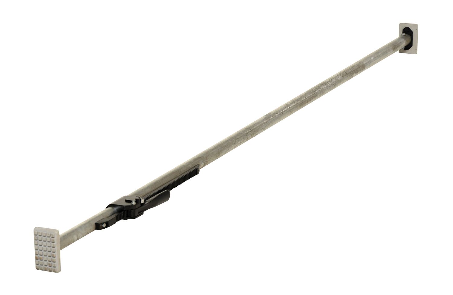 The one Piece rounded cargo bar keeps trailer contents in place to eliminate damaged goods. It has a simple mechanical lock that will not vibrate loose. Constructed of square tubing with a wall construction that is lightweight yet extremely strong. Square articulating steel end plates feature pads for positive gripping action. This bar has end plates and fits between trailer walls.