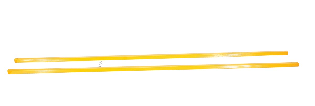 Steel square safety Handrail connection tubing (with hardware) provides an economical way to protect people and machinery. Applications include loading docks, floor openings, walkways, and mezzanines. Highly visible safety yellow powder coat finish (sold in pairs).