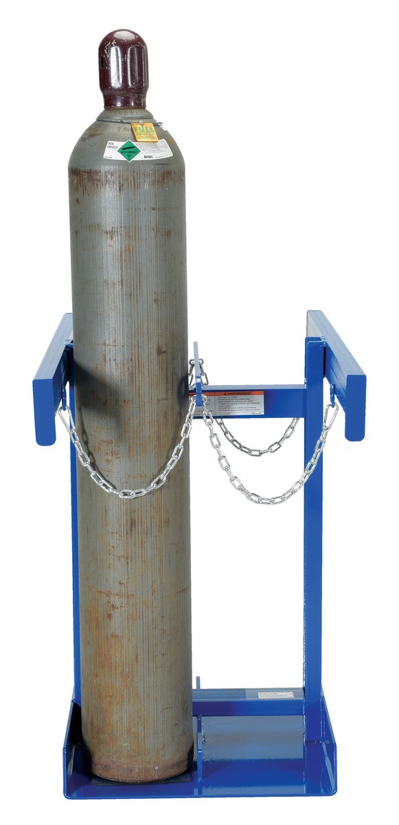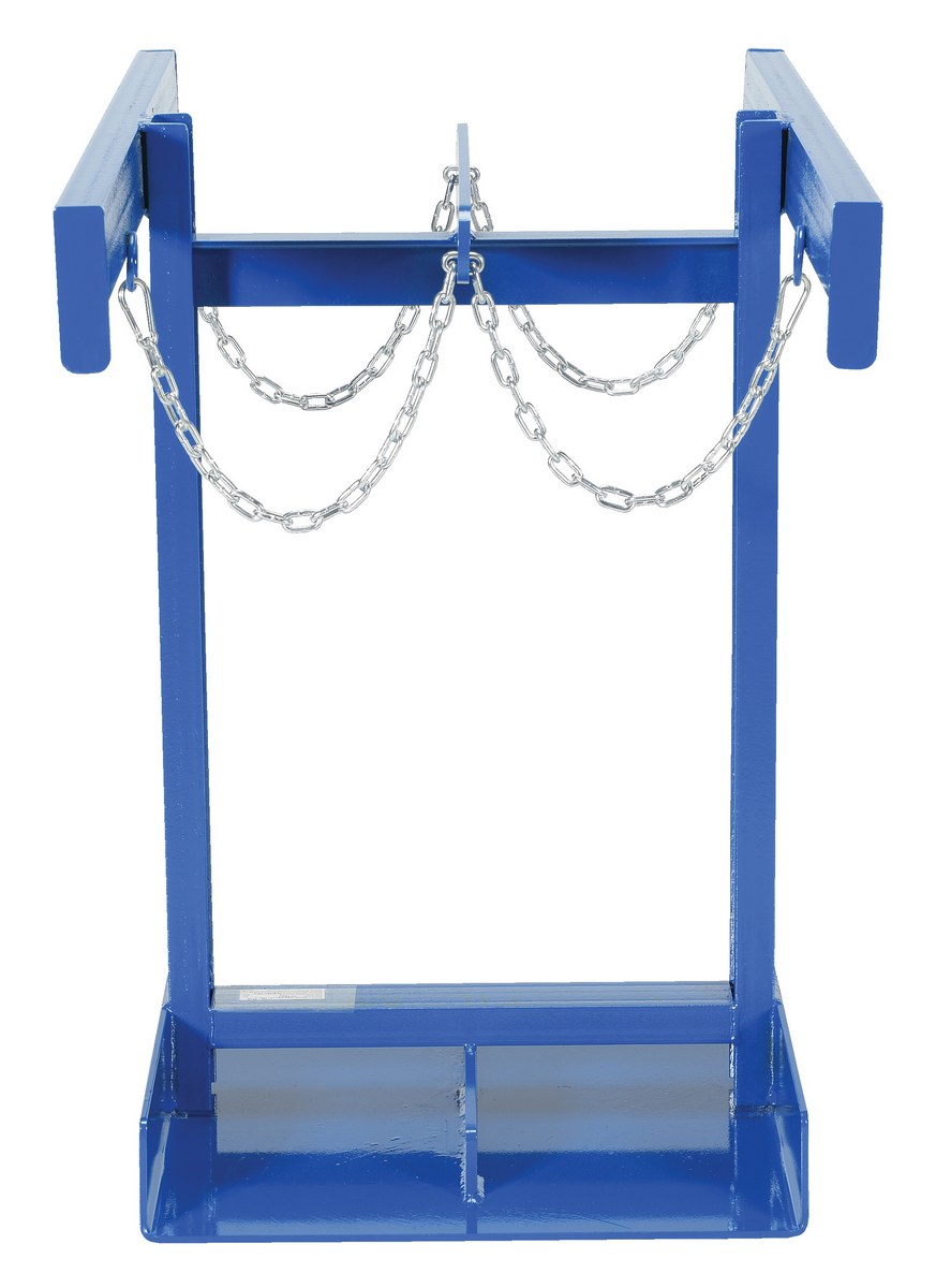 Steel Cylinder Caddy 4 Maximum Cylinders 800 Lb. Capacity BlueA Cylinder caddy transports cylinders safely with this fork mounted style. This unit comes complete with safety chains to secure the cylinders in place.
