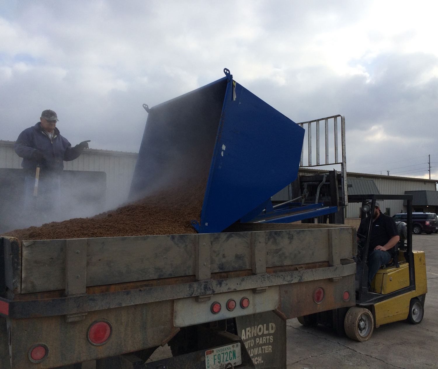 Steel Medium Duty Self Dumping Hopper 2-1/2 Cubic Yard 4000 Lb. Capacity BlueThis Medium Duty self-dumping steel Hopper with bumper release automatically dumps when bumper release contacts the front of the dumpster. Hopper returns to an upright and locked position automatically after it dumps. Also includes a cable that may be operated from the seat of the fork truck to manually dump the hopper. The included safety restraint should be properly secured to a fork truck before dumping. (Length dimension is measured at top of chute.) Self-dumping hoppers facilitate compliance with OSHA general industry rule 29 CFR 1910.178(m)(5)(iii) by allowing lift truck operators to remain at the controls of their truck throughout the dumping process.