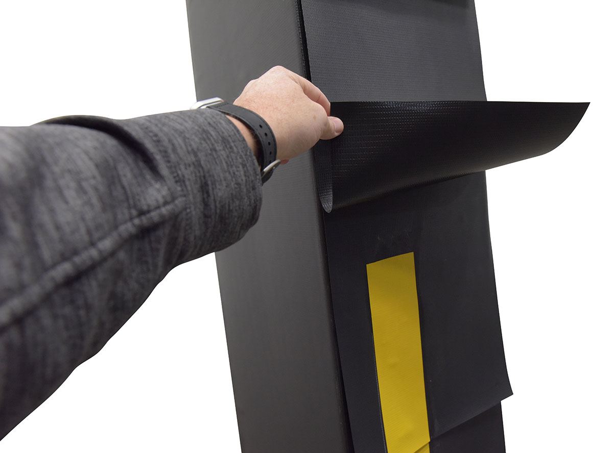 Optional full height pleats, standard guide strips twenty-four (24) inch high for Dock Shelter and dock seals.