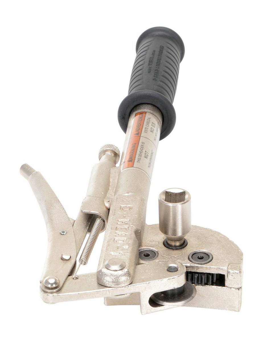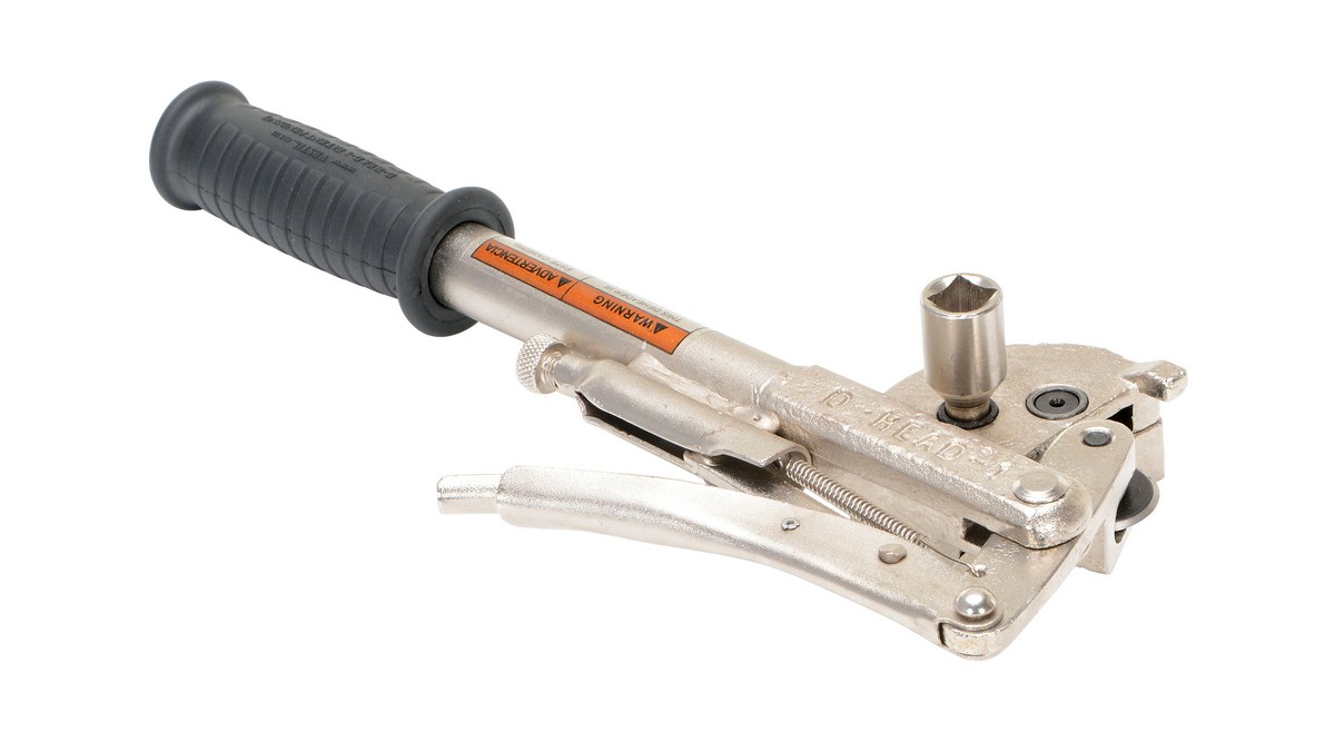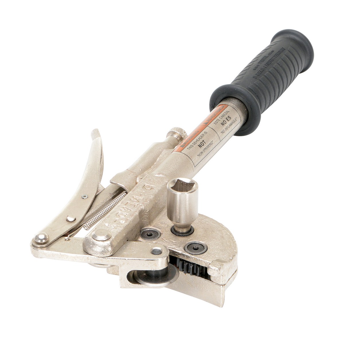 Steel Manual Drum Deheader Express Open 3 In. x 5-1/2 In. x 14 In. SilverQuickly remove the head of a steel drum with this express open manual drum Deheader! Includes vice-grip style mechanism for securely attaching unit to drum. Use only either a ½ inch manual ratchet wrench or electric drill to operate the Deheader ratchet. Do not use a pneumatic or electric impact wrench to operate the header ratchet. Warning: improper use of this drum header might result in personal injury or damage the header. Ratchet not included.