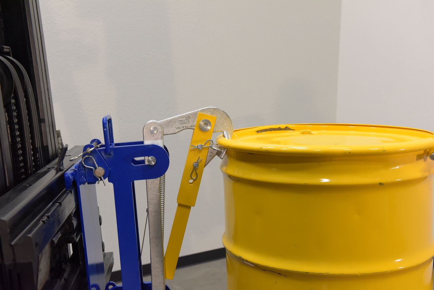 Steel Automatic Eagle Beak Drum Lifter 16-5/8 In. x 16-15/32 In. x 30-7/16 In. 1000 Lb. Capacity BlueA drum lifter is a great way to quickly maneuver drums. This type of lifting option minimizes manual labor and time spent transferring drums between areas. The unit simply attaches to the carriage of the forklift and can be used immediately after installation. A durable finish protects the lifter from marring.